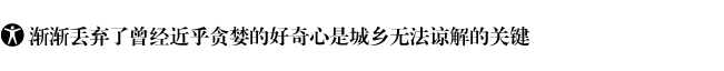![]() 至此,城鄉孰優孰劣不再是現代社會和經濟發展之下的考慮,按照齊美爾對生活方式的理解,他所堅持的"距離是一種心理狀態"協助他確立了"城市文化才是現代性文化"的思想,因為"都市中擁擠的人群和混雜的交往,若沒有這種心理距離,簡直就無法忍受"。眼下的鄉村也正在變得如此——城市的孤獨、割裂的個人特征已經滲入鄉村,鄉村居民現在對鄰居的認識也逐漸轉入職業身份,而非其他。 與齊美爾在《陌生人》所述的沒有遠近之分的陌生不同,城市和鄉村相識已久,它們習慣了兩者之間你進我退的迂回,鄉村根本就是城市的拐杖,而城市根本就是鄉村的成長,城市離不開鄉村,鄉村也離不開城市。唯一的改變是,城市(鄉村)對鄉村(城市)不再好奇。 職業身份或者說社會分工的精細化改變了城市和鄉村曾經的相互了解,知之愈深只是解構了曾經深不可測的好奇心,并沒有緩解它們之間來自文化背景、經濟結構、生活習慣的沖突,城市性和鄉村性在相互混雜中變得越來越突出。 |