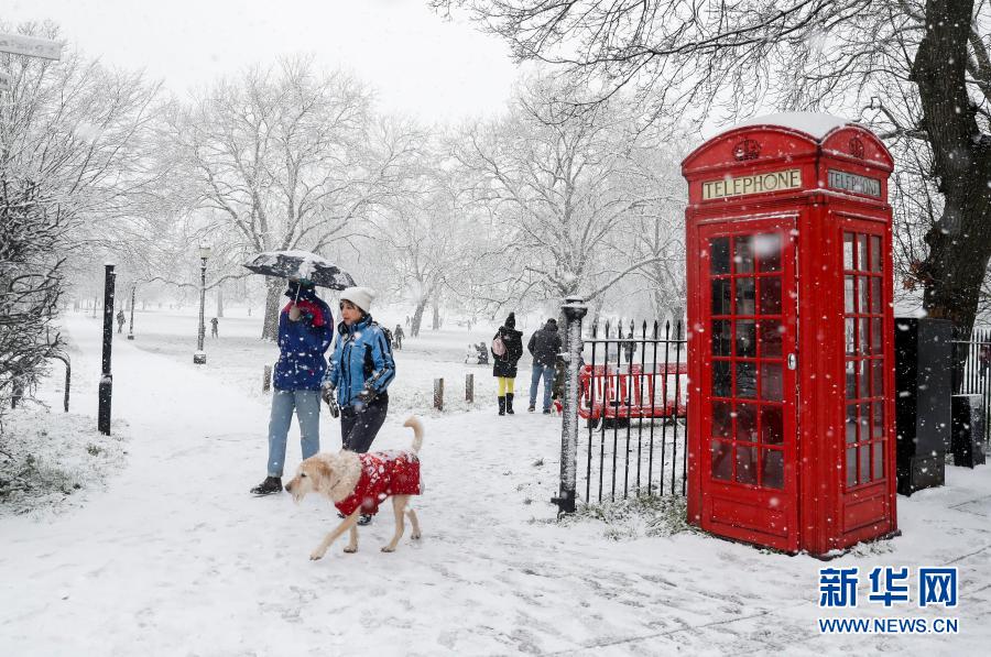 1月24日,人們在英國倫敦的大雪中行走。當日,英國倫敦迎來降雪。新華社記者韓巖攝