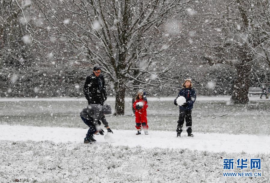 1月24日,人們在英國倫敦的大雪中享受雪趣。新華社記者韓巖攝