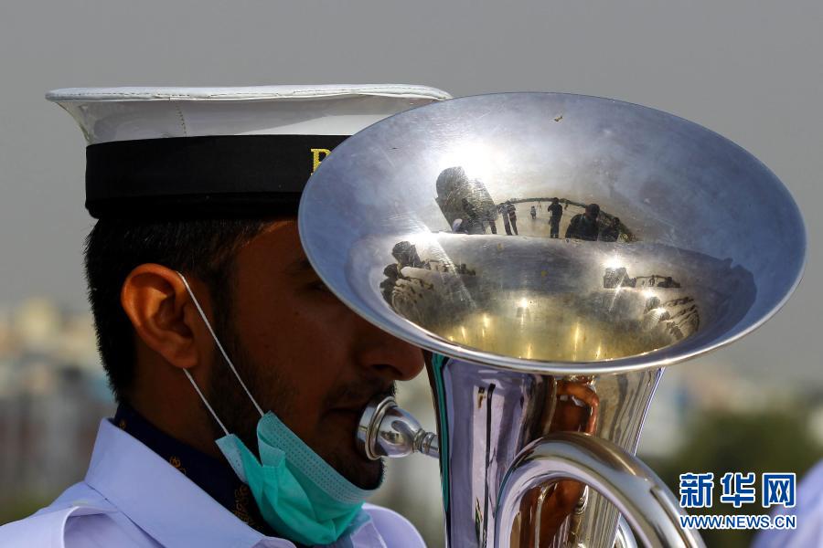 3月23日,樂手在位于巴基斯坦卡拉奇的國父真納墓參加“巴基斯坦日”紀念活動。