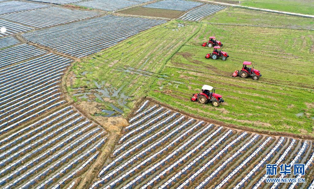 3月3日,在江西省興國縣高興鎮新圩村高標準農田里,農戶駕駛“鐵?!狈r田。新華社發(張聲 攝)