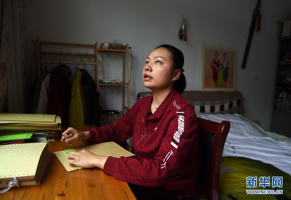 4月28日,葉景芬在位于龍泉市西街街道河星村的家中進行盲文書寫。