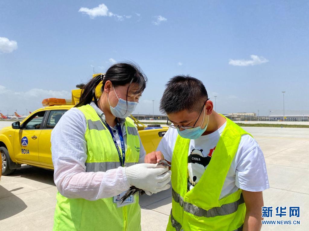 鳥擊防范員辛曉芳(左)和同事照顧鳥類(資料照片)。