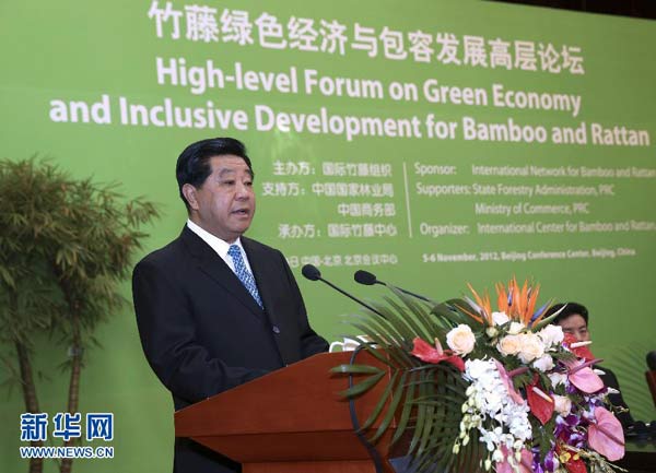 ??? 11月6日,全國政協主席賈慶林在北京出席國際竹藤組織成立15周年紀念大會并致辭。 新華社記者龐興雷攝
