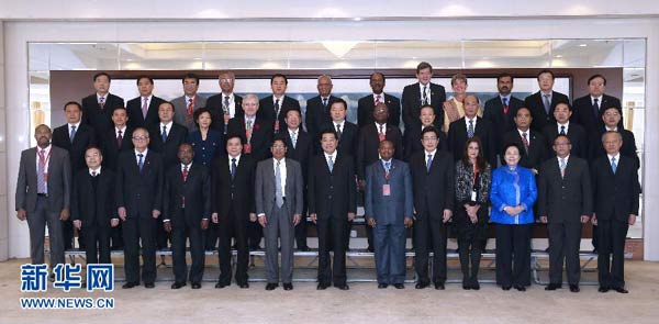 紀念大會開始前,賈慶林會見了出席大會的各國部長、駐華使節和國際組織負責人。