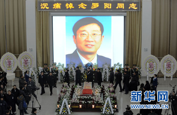 ??? 11月29日,各界人士參加羅陽同志的追悼會。當日上午10點,羅陽同志的追悼會在沈陽回龍崗殯儀館舉行。各界人士懷著極其沉痛的心情,深切悼念中航工業沈陽飛機工業(集團)有限公司董事長、總經理、航母艦載機殲-15研制現場總指揮羅陽同志。新華社記者 楊青 攝