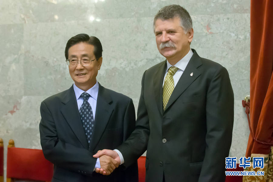 ??? 9月11日,中共中央書記處書記、中央紀委副書記趙洪祝(左)在匈牙利首都布達佩斯會見匈牙利國會主席克韋爾。應匈牙利執政黨青民盟邀請,中共中央書記處書記、中央紀委副書記趙洪祝率中共代表團于9月10日至11日訪問匈牙利。新華社發(弗爾季·奧蒂洛攝)