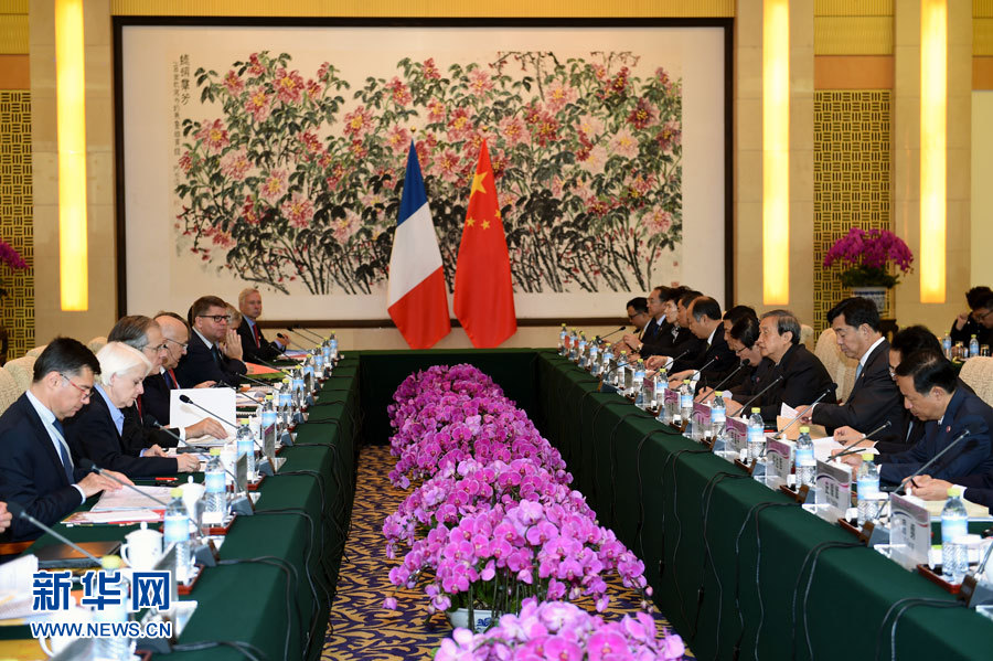 ?? 9月18日,國務院副總理馬凱與法國財政和公共賬目部長薩潘在北京共同主持第三次中法高級別經濟財金對話。 新華社記者張領攝
