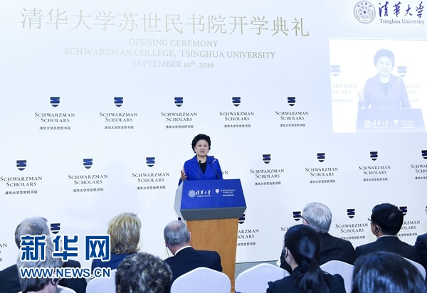 9月10日,清華大學蘇世民書院開學典禮在北京舉行,國務院副總理劉延東出席典禮并致辭。 新華社記者 張領 攝