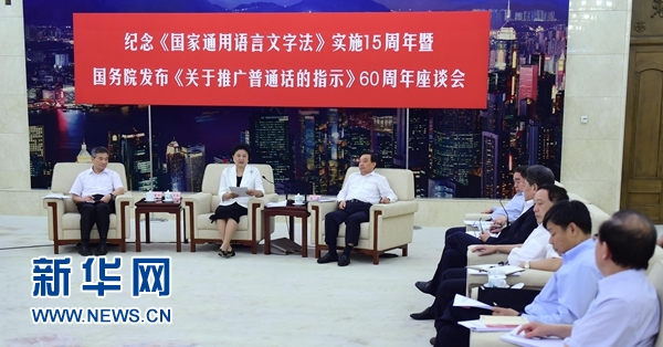 劉延東在紀念《國家通用語言文字法》實施15周年暨國務院發布《關于推廣普通話的指示》60周年座談會上強調