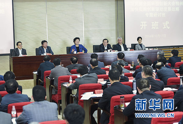 10月17日,中央組織部、中央黨校、科技部聯合舉辦的省部級干部“學習貫徹全國科技創新大會精神加快實施創新驅動發展戰略”專題研討班在北京開班。中共中央政治局委員、國務院副總理劉延東出席開班式并講話。新華社記者 張領 攝