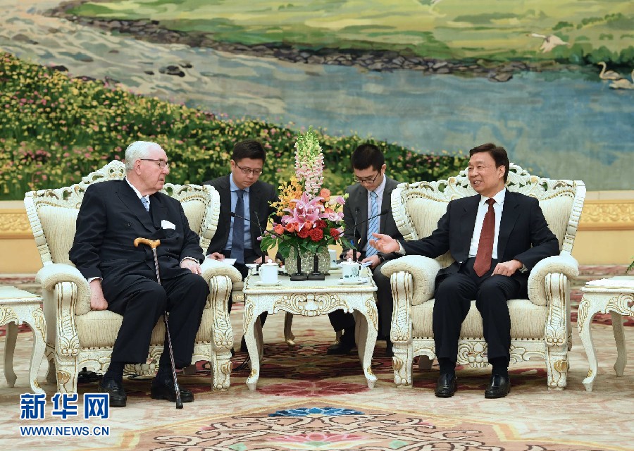 2月16日,國家副主席李源潮在北京會見應全國友協邀請訪華的英國怡和集團主席亨利·凱瑟克爵士。 新華社記者 饒愛民 攝