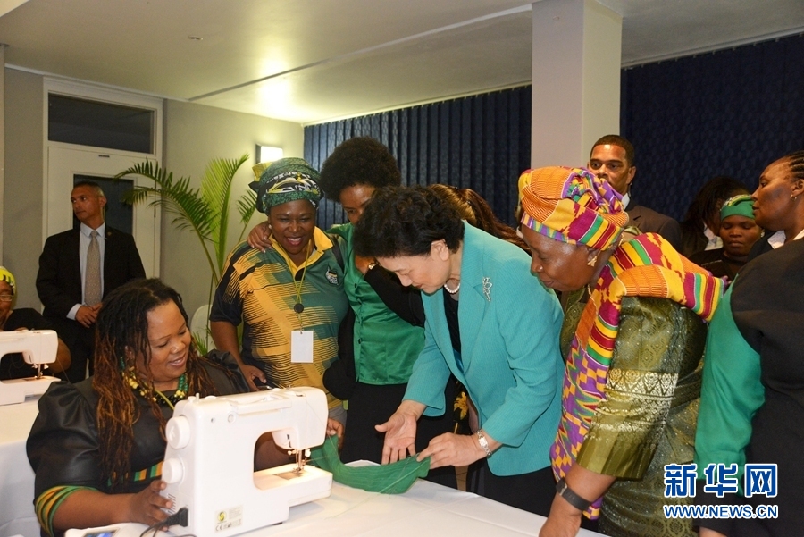 4月26日,中國國務院副總理劉延東(中)在南非德班出席全國婦聯向非國大婦聯捐贈縫紉機儀式。 新華社記者田弘毅攝