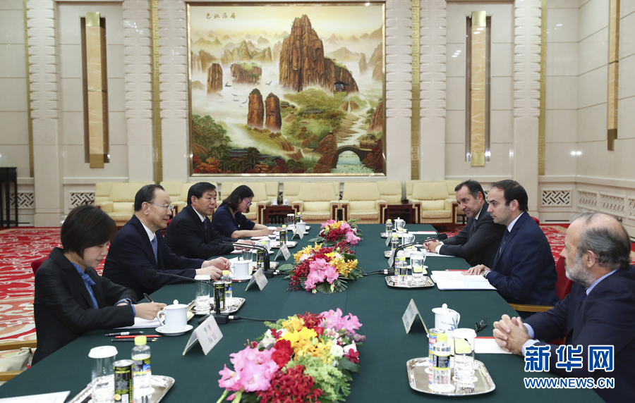 5月16日,中共中央書記處書記、全國政協副主席杜青林在北京會見阿根廷共和國方案黨總書記金塔納。 新華社記者 謝環馳 攝