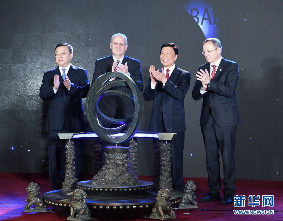 6月6日,2017年全球航天探索大會在北京開幕。中共中央政治局委員、國家副主席李源潮出席開幕式。這是李源潮(右二)與中外嘉賓在大會啟動儀式上。新華社記者張領攝