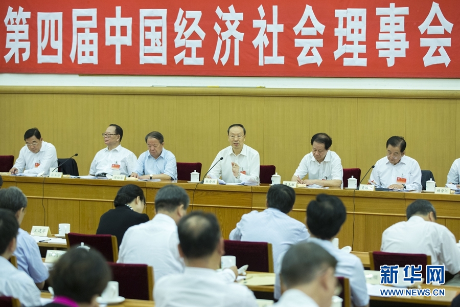6月19日,中國經濟社會理事會四屆四次會議在北京舉行。中共中央書記處書記、全國政協副主席、中國經濟社會理事會主席杜青林出席并講話。新華社記者崔新鈺攝