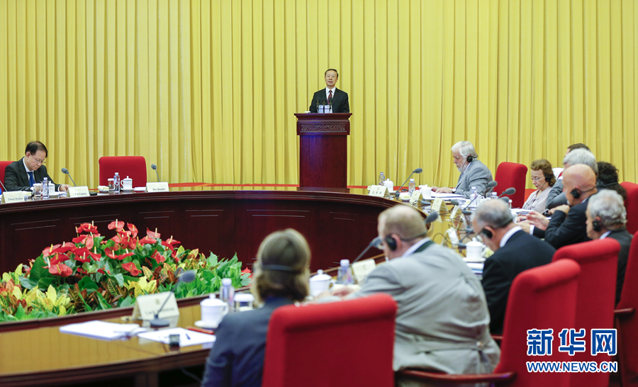 6月29日,中歐圓桌會議第十五次會議在北京開幕。中共中央書記處書記、全國政協副主席、中國經濟社會理事會主席杜青林出席開幕式并發表主旨演講。新華社記者 崔新鈺 攝