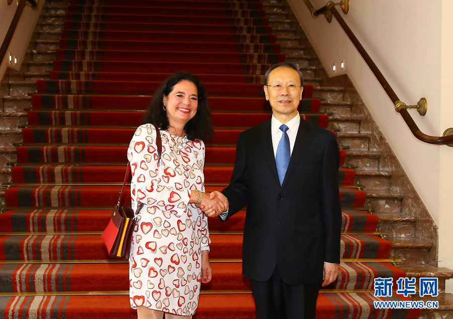 7月4日,在比利時首都布魯塞爾,中共中央書記處書記、全國政協副主席杜青林(右)會見比利時聯邦參議長德弗萊涅。應德弗萊涅邀請,杜青林率中共代表團于7月4日至5日訪問比利時。 新華社記者龔兵攝
