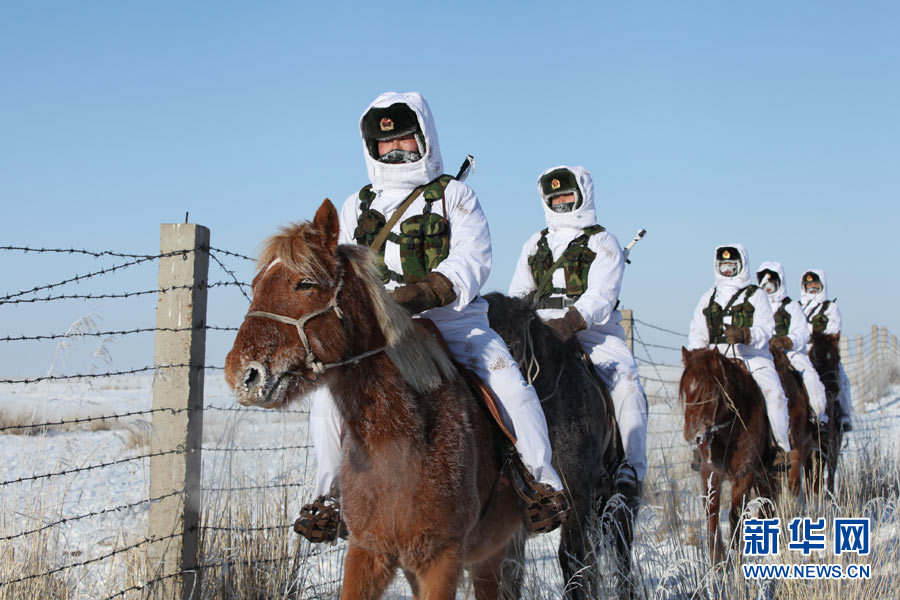戍邊官兵冬季在邊防線上巡邏執勤。陳在林 攝