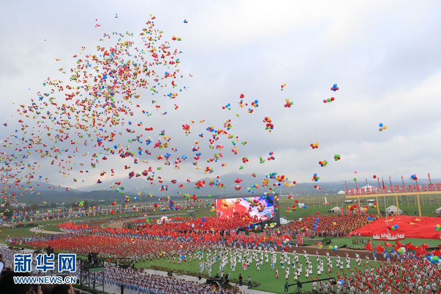 8月8日,內蒙古自治區成立70周年慶祝大會在呼和塔拉內蒙古少數民族群眾文化體育運動中心舉行。圖為群眾行進表演。新華網記者 陳杰 攝
