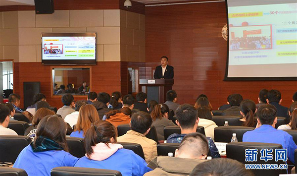 在國網天津濱海公司,張黎明在“十九大代表與國資系統青年面對面宣講會”上宣講十九大精神(11月10日攝)?!⌒氯A社發