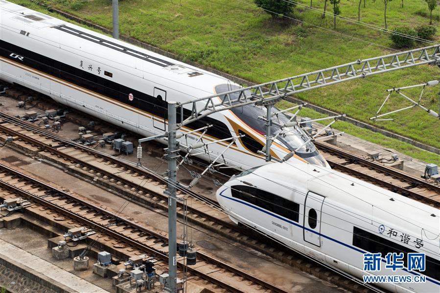 9月21日,在京滬高鐵線路上開始投入運營的“復興號”最高時速達到355公里,這標志著我國成為世界高鐵商業運營速度最高的國家。(新華社發 蘇陽 攝)