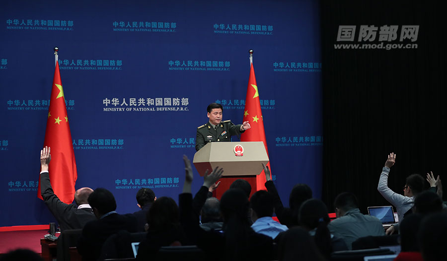12月28日下午,國防部舉行例行記者會,國防部新聞局副局長、國防部新聞發言人任國強大?;卮鹩浾咛釂?。李曉偉 攝