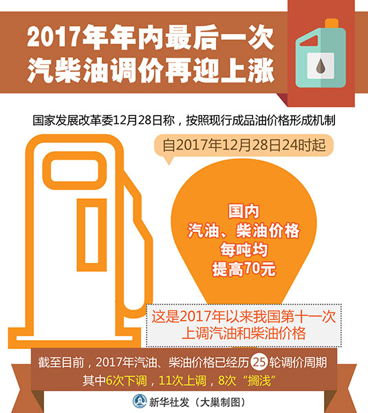 圖表:2017年年內最后一次汽柴油調價再迎上漲 新華社發 大巢制圖