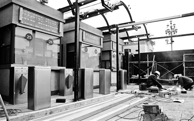 昨天下午,北青報記者在北京站站前廣場看到,進站口西側已經被施工圍擋封住,里面的工人師傅正在進站口安裝“刷臉”自動檢票閘機。6臺新設備將于本月底安裝完畢,春運前投入使用。