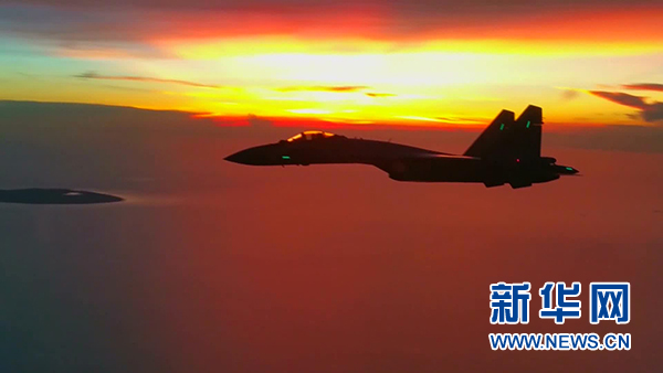 中國空軍蘇-35戰機海上巡航(視頻截圖)。新華社發
