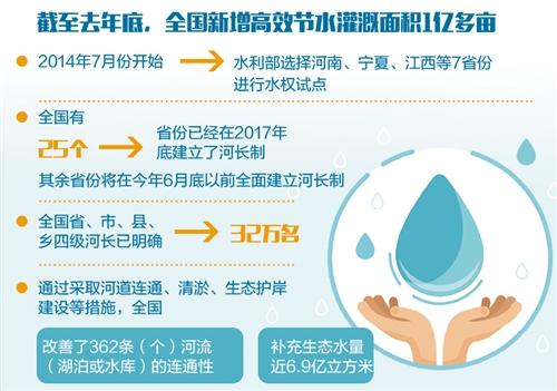 “目前,全國有25個省份已經建立了河長制,其余省份將在今年6月底前全面建立河長制。全國省、市、縣、鄉四級河長已有32萬名。各級河長帶頭巡河履責,開展專項行動,整治突出問題,健全管理機制,取得了明顯成效?!彼亢娱L辦主任祖雷鳴說,很多河流從“沒人管”到“有人管”、從“多頭管”到“統一管”、從“管不好”到“管得好”,實現了重大轉變。