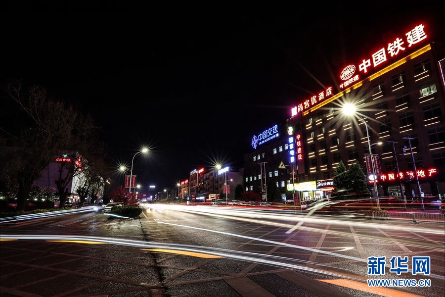 容城縣奧威路夜景,這里被外界稱為“央企大街”。中國雄安官網記者 王永康 攝