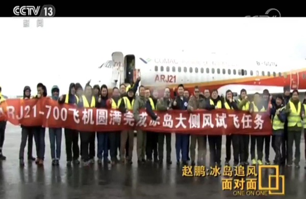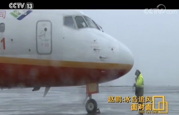 3月26日上午9點整,當試飛機組終于得到允許起飛的指令時,天空中出現了一道絢麗的彩虹,伴隨著這個意外降臨的驚喜,試飛機組駕駛著ARJ21迎風起飛。在強烈的側風沖擊下,飛機的機身開始晃動,地面團隊成員的心也隨之提了起來。決定性的一刻即將到來,當ARJ21像“螃蟹”一樣緩緩的降落在了凱夫拉維克機場,監測中心的成員們激動不已。