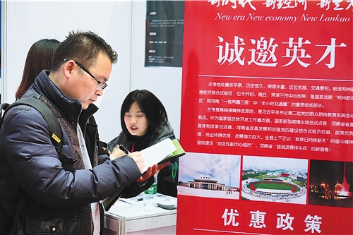作為高校畢業生生源大省,河南省每年高校畢業生人數在50萬左右。據河南省人才交流中心副主任盧宇表示,截至2018年3月底,通過對河南省人才交流中心等23個信息采集點的數據采集統計情況來看,全省人才服務機構為高校畢業生提供各類就業崗位20.42萬個,進場求職的高校畢業生人數12.64萬人次,求人倍率為1.61,達成意向率40.1%,同比增加2.78%。