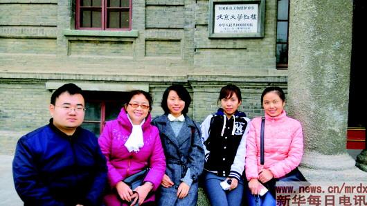 楊宗麗(左二)帶著學生參觀北大紅樓。圖片由受訪者提供