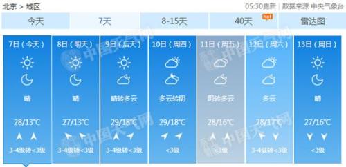 本周北京天氣平靜最高溫達29℃ 晝夜溫差超10℃