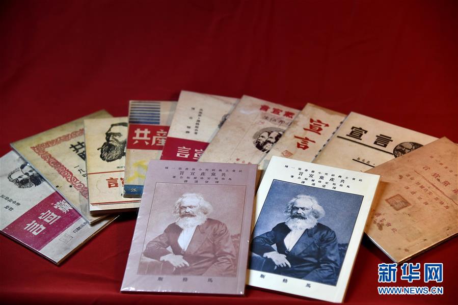 這是廣饒縣《共產黨宣言》紀念館收藏的早期多個版本《共產黨宣言》復制本(4月12日攝)。新華社記者 郭緒雷 攝