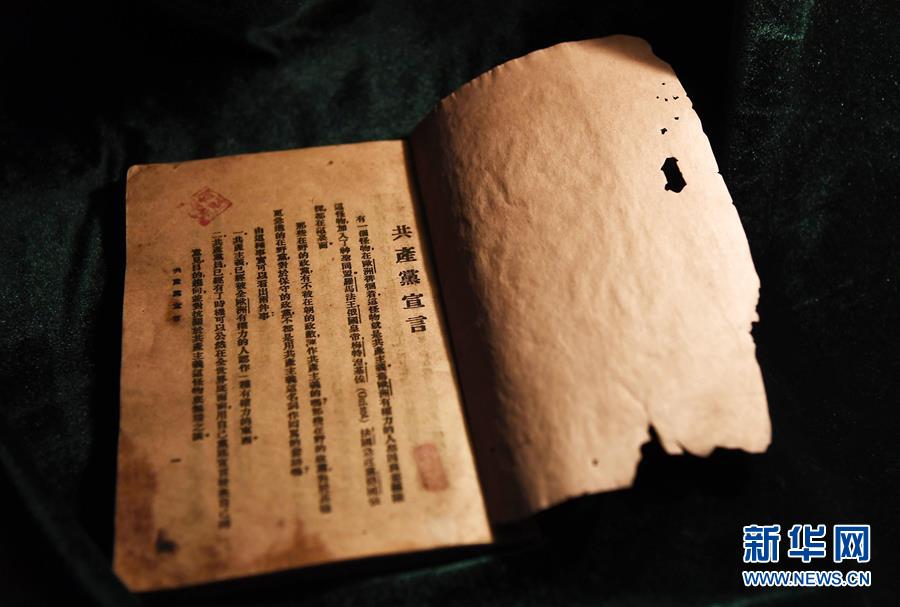 這是廣饒縣《共產黨宣言》紀念館收藏的1920年8月出版的《共產黨宣言》中文首譯本(4月12日攝)。新華社記者 郭緒雷 攝