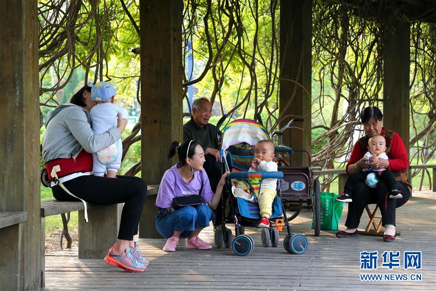 廣饒縣大王鎮居民在文化廣場休息(4月25日攝)。新華社發(王南 攝)