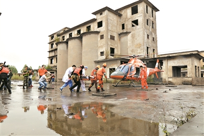 真人模擬遇險人員救援行動。