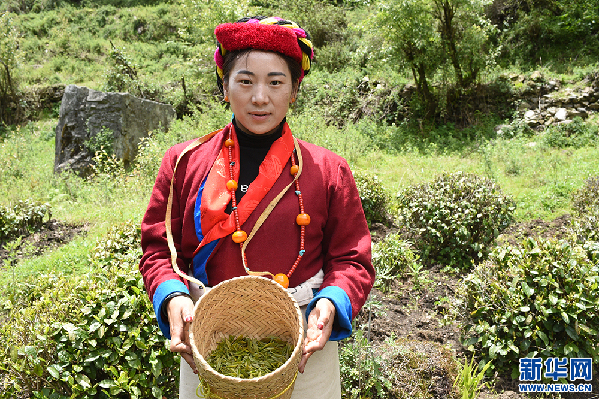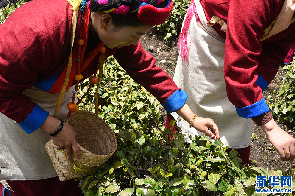 村民在勒鄉茶園采茶(5月12日 攝)。新華網記者 陳琳 攝