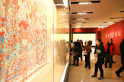 2018年1月17日,觀眾在北京國家博物館欣賞由中國國家博物館、四川博物院和榮寶齋聯合主辦的“張大千藝術展”。(圖片來源:視覺中國)