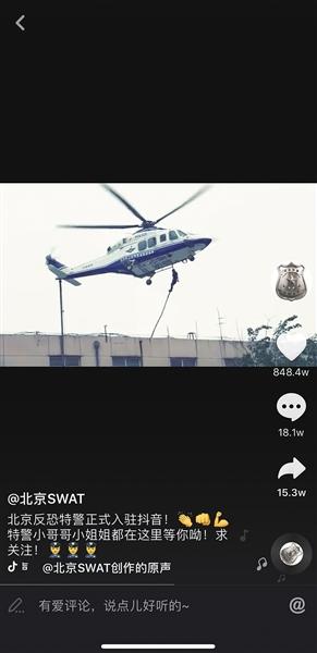 “相比文字,用視頻展現特警隊的隊伍形象和精神面貌更有視覺沖擊力?!被谶@樣的考慮,北京市公安局反恐特警總隊開設了首個新媒體宣傳賬號。