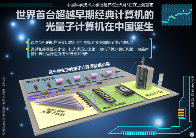 2017年5月3日,世界首臺超越早期經典計算機的光量子計算機在中國誕生 (新華社記者 金立旺 馬研 編制)