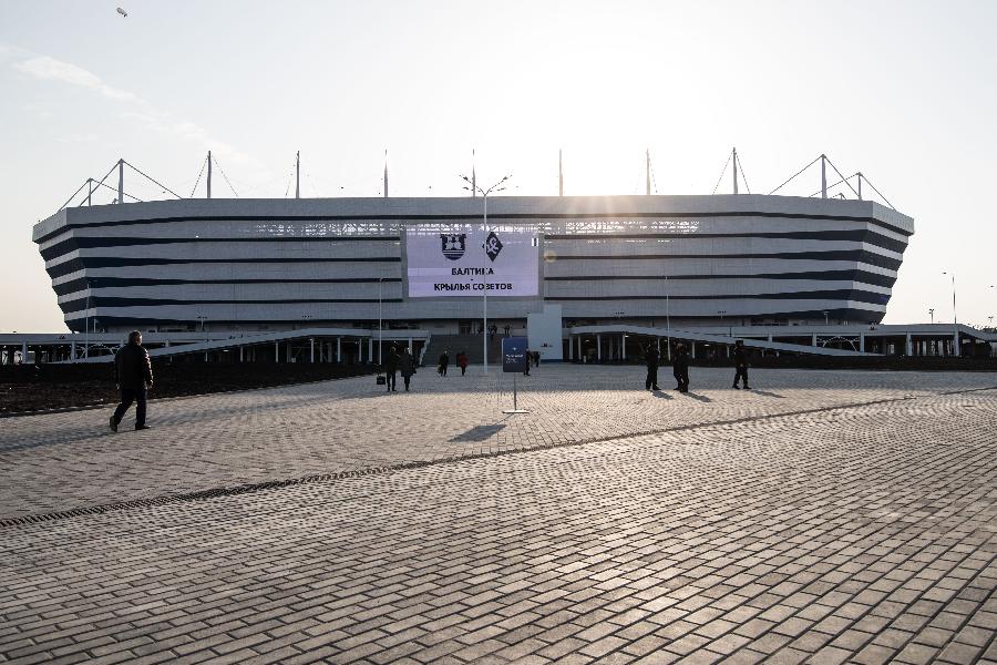 加里寧格勒體育場位于俄羅斯加里寧格勒市東南,是本屆世界杯新建場館。球場可容納3.5萬名觀眾。俄羅斯世界杯期間,加里寧格勒體育場將舉辦四場小組賽。這是加里寧格勒體育場外景(4月11日攝)。 新華社記者吳壯攝