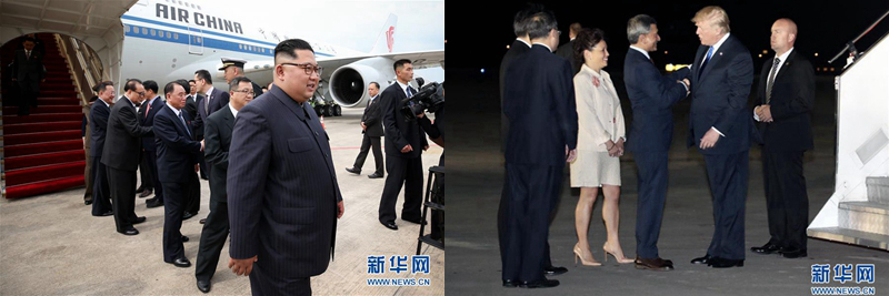 6月10日,朝鮮國務委員會委員長金正恩與美國總統特朗普分別抵達新加坡。新華社發