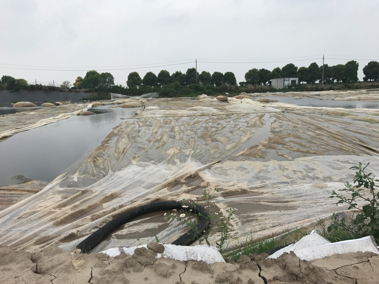 但是濱江污水處理廠在2013年租賃泰興市建筑材料三廠在頭圩村的空地,未經任何部門批準,非法建設長寬高分別為70米、70米、4米的大池(南池),用來堆存大量污泥。