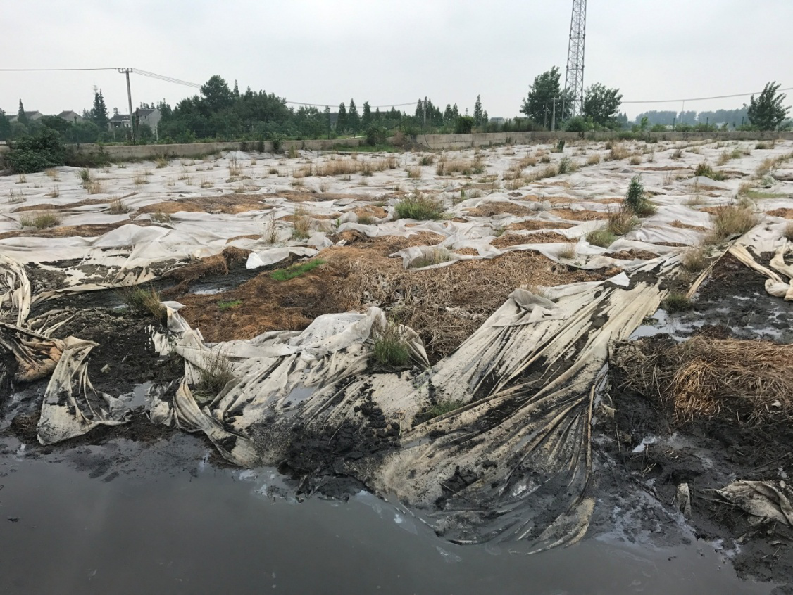 2018年6月9日,督察組對濱江污水處理廠堆放污泥的泰興市濱江鎮頭圩村暗訪發現,在頭圩村緊靠江堤東側,有兩個巨大的污泥堆積池,目測南側堆積池較大,面積接近足球場,北側的略小。