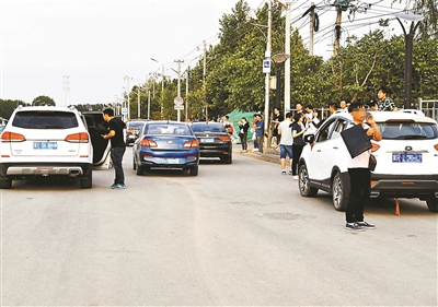 當日18點45分,陸續有車主將車開走。地鐵站附近的兩側道路也停滿了等人的外地車,盡管有協管員不時疏堵,車輛仍然并排停了兩排,導致道路擁堵。盡管處在正在建設中的城市副中心核心區,但僅從車牌上很難看出北京的跡象。
