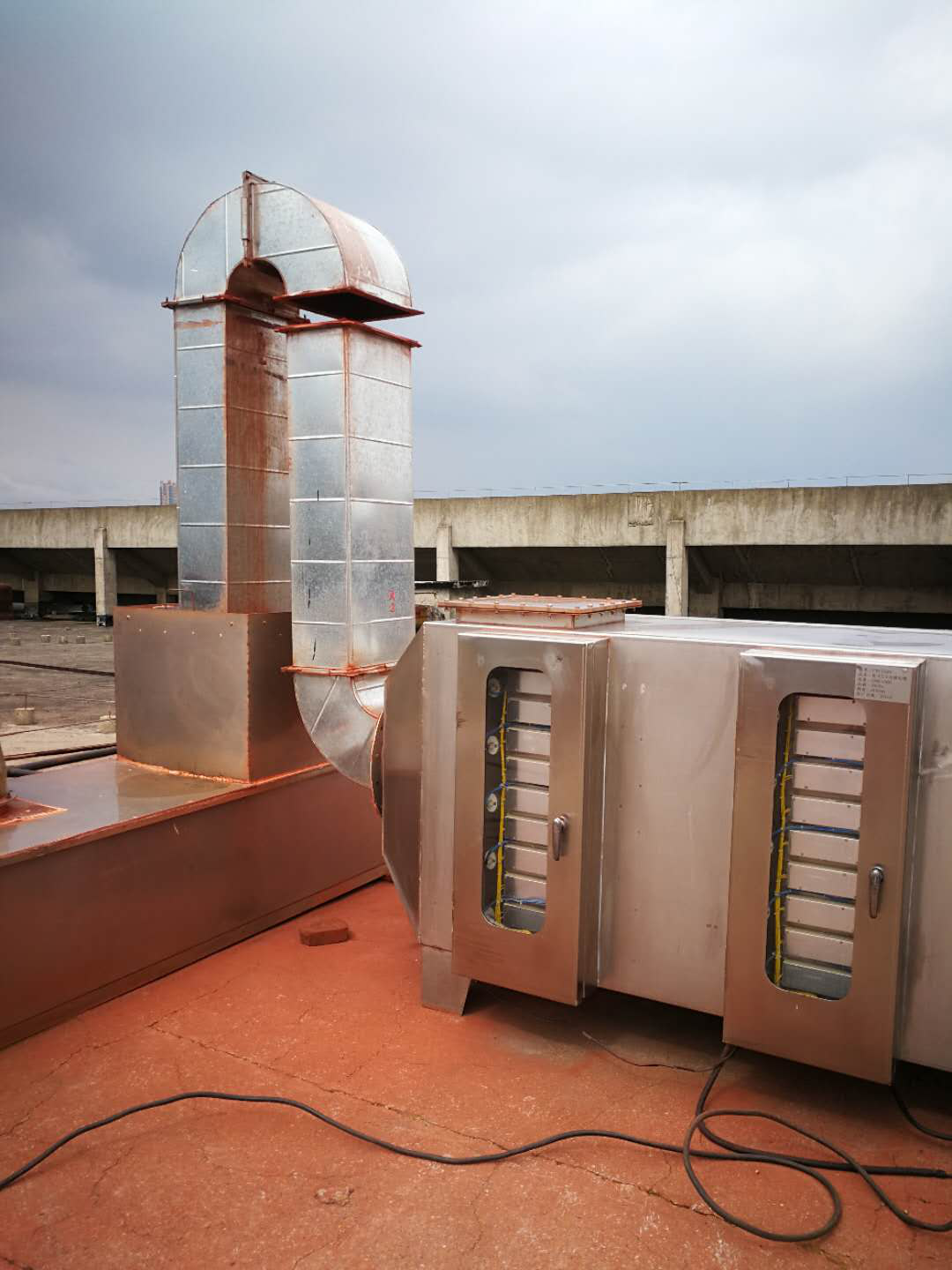 圖為被江西匯仁藥業有限公司擅自截斷的UV光催化塔進氣管道
